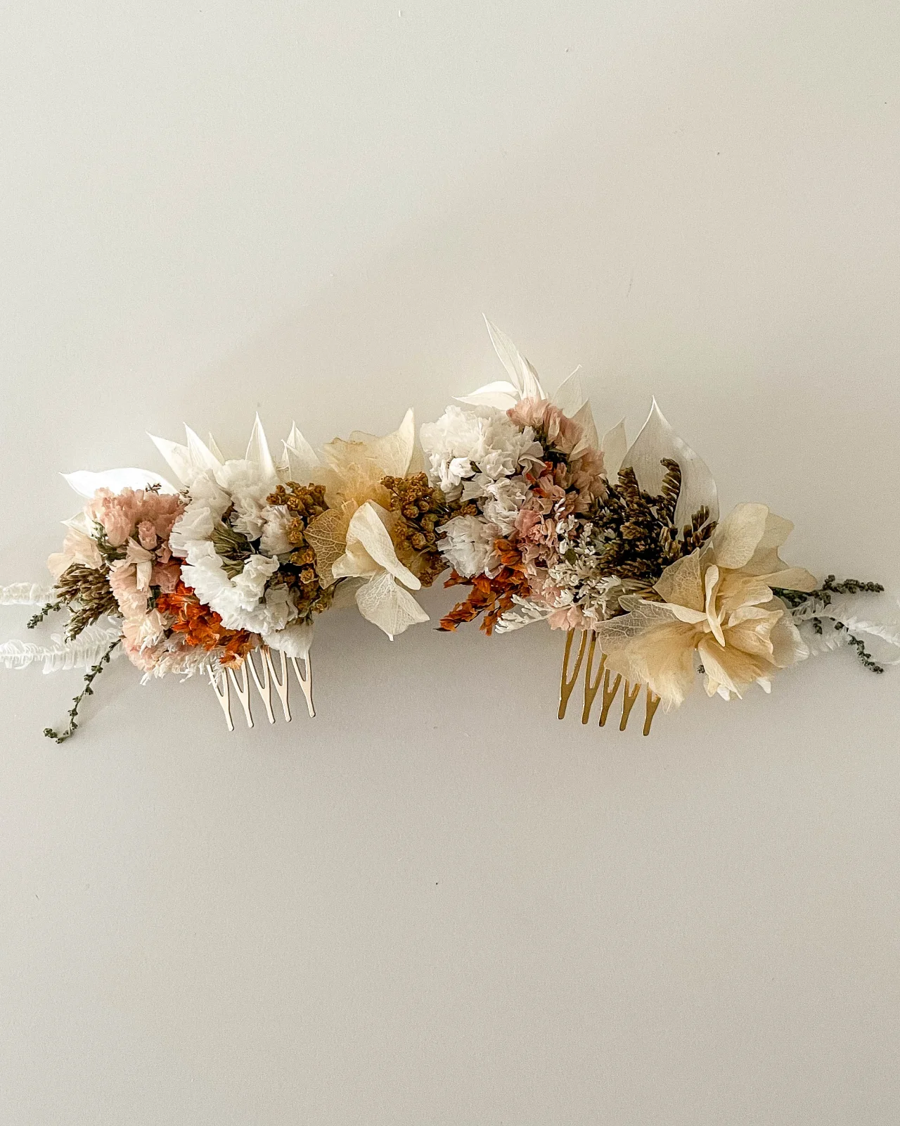 Indique quais as cores pretendidas para o toucado e arranjo no campo 'Informações adicionais' ao finalizar a encomenda.