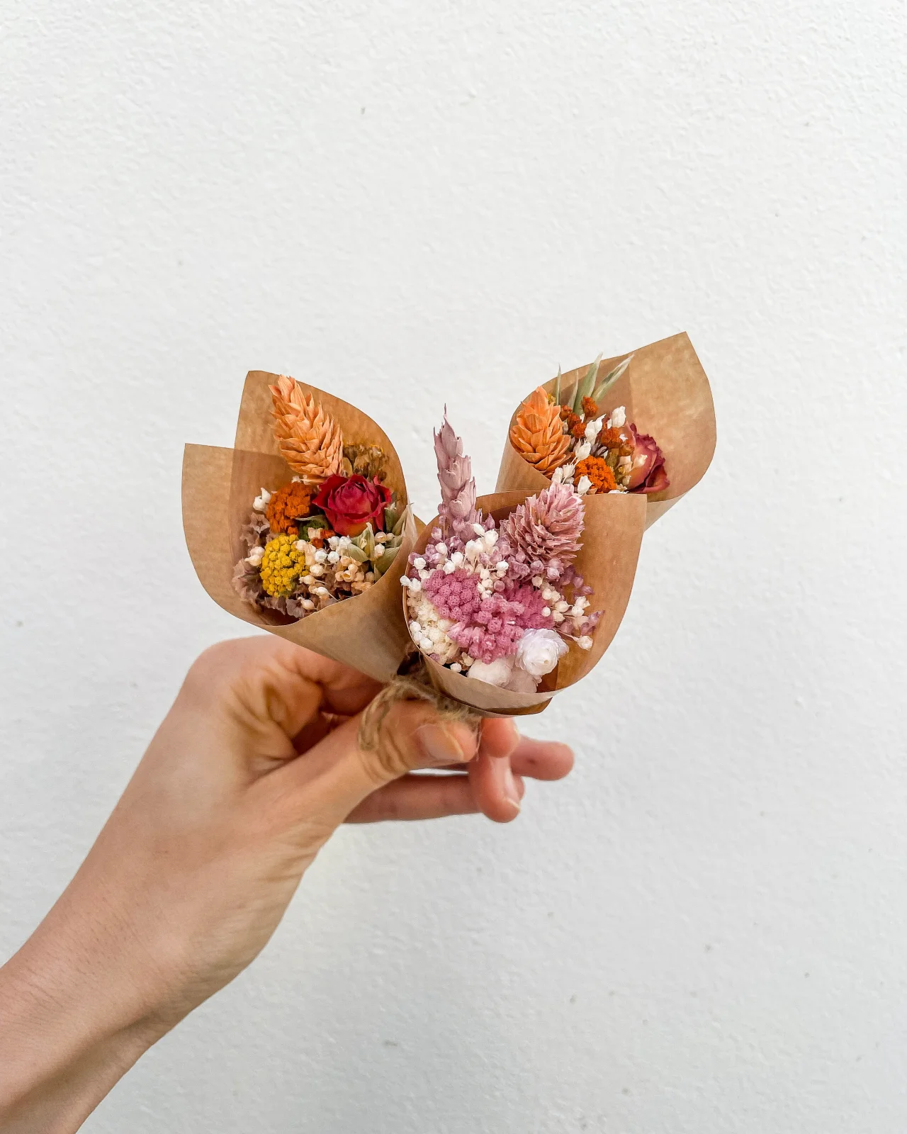 Ramos de flores secas e preservadas.